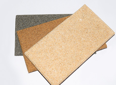 微粒材料是一種新型綠色裝飾材料,具備優(yōu)異的聲學(xué)性和物理性能。該材料是以天然砂?;蚪?jīng)環(huán)保處理的固廢顆粒為骨料,以環(huán)保膠凝劑,通過壓振工藝,生產(chǎn)的具有大量相互連通的微小空隙的多孔材料。